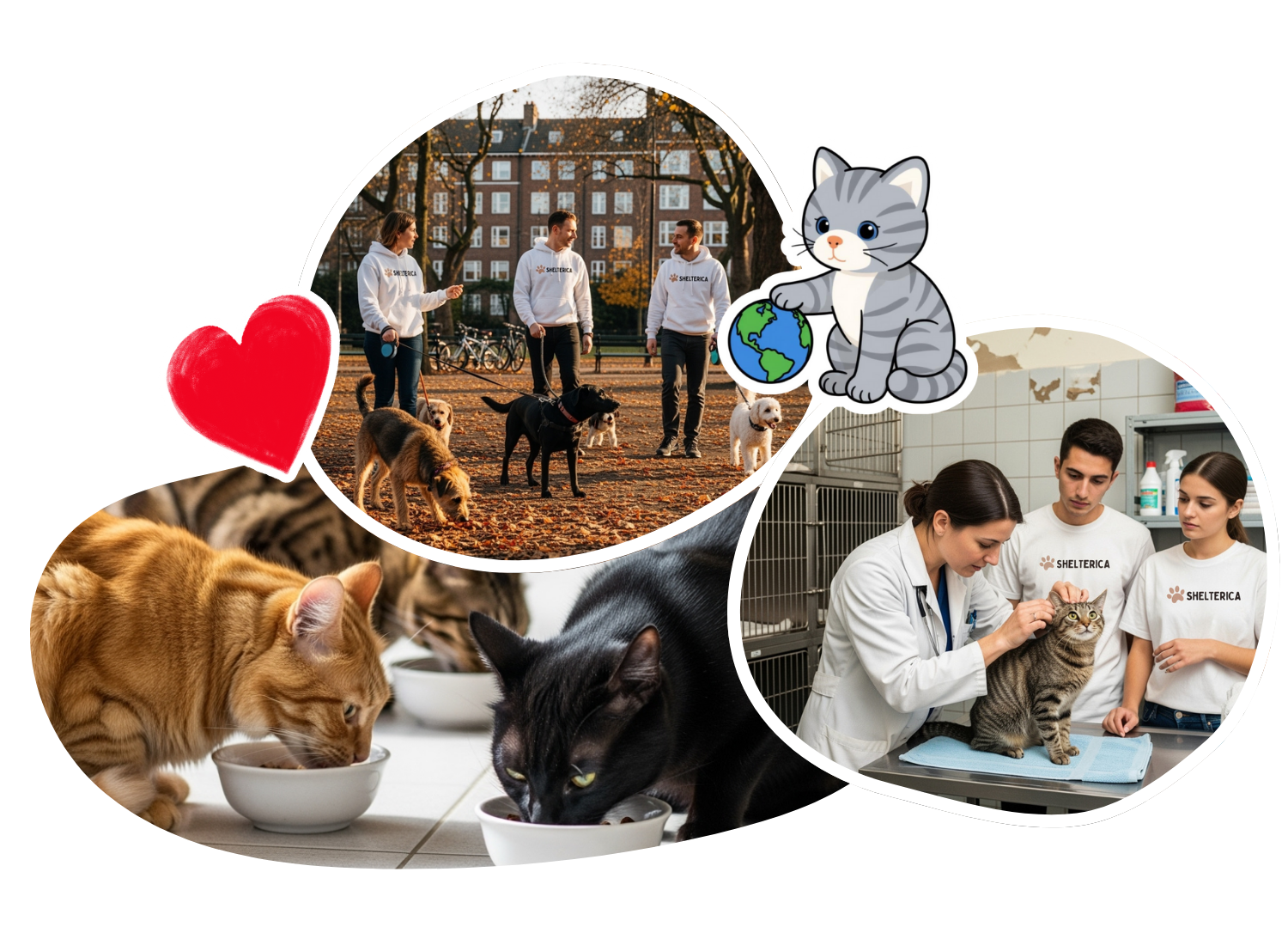 At Shelterica, we don’t just talk about helping animals — we show up. From walking shelter dogs and feeding stray cats, to supporting local shelters and providing sterilization. Every action counts.
